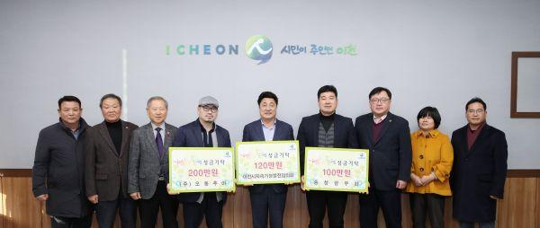 이번 기탁에는 충청향우회에서 100만원, ㈜오동추야에서 200만원, 이천시지속가능발전협의회에서 120만원을 저소득층 지원에 사용해 달라며 기탁해 왔다.