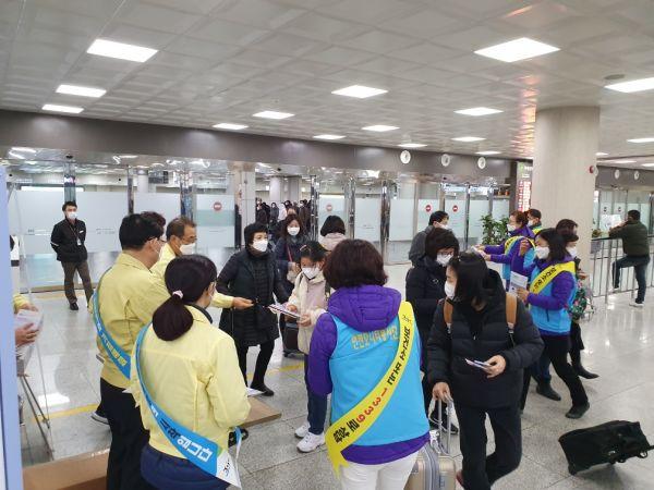 이날 도는 공항 이용객들에게 신종 코로나바이러스 감염증 예방수칙이 적힌 홍보물을 배부하며 마스크 착용과 옷소매로 가리고 기침하기, 비누를 이용해 흐르는 물에 30초 이상 손 씻기 등이 중요하다는 사실을 당부했다.