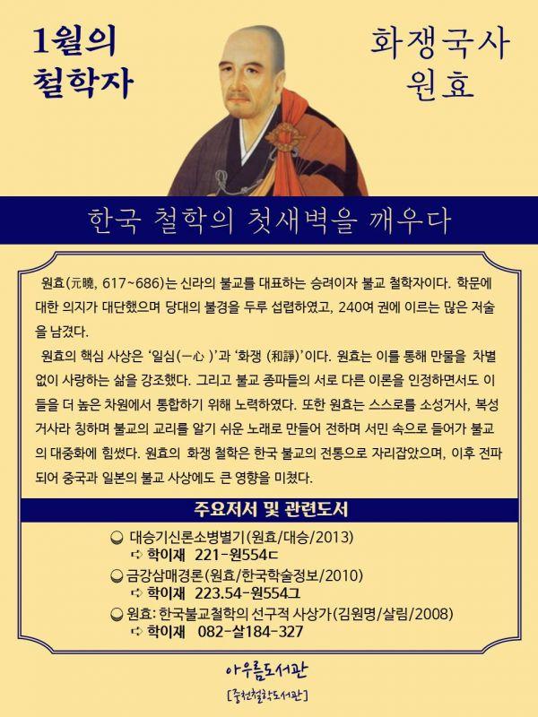 2020년 1월의 철학자는 승려이자 불교사상가인 ‘화쟁국사 원효’가, 2월의 철학자로는 신라의 유학자 ‘고운 최치원’이 선정됐다.