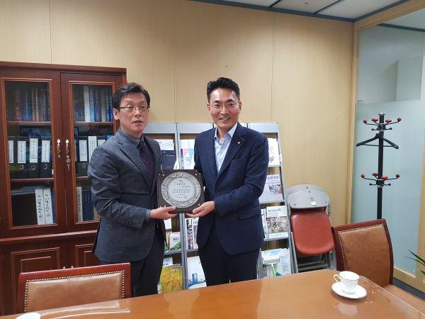 이날 김성기 군수는 군수실에서 한국국토정보공사 가평지사장에게 명예군민증서를 수여했다.