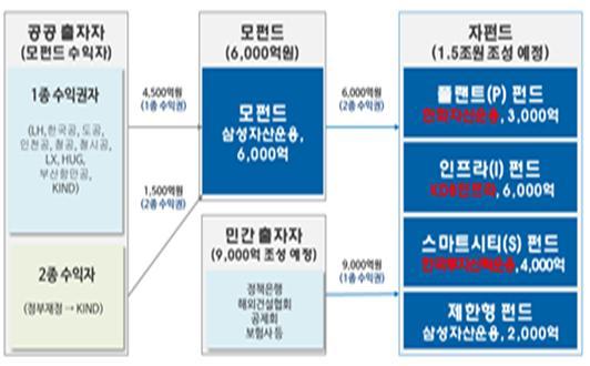 자펀드는 조기 출시되는 제안형 펀드 이외에 플랜트, 인프라, 스마트시티 펀드로 구성된다.