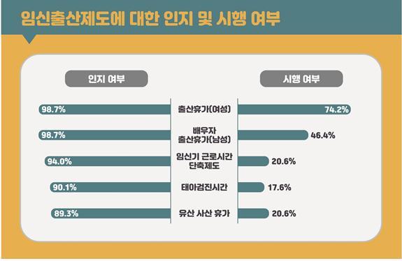 임신출산제도 높은 인지도 비해 시행률 저조…가장 많이 시행 ‘출산휴가’ 74.2%