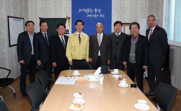 지난 5일 도에 따르면, 정기엽 충청향우회 중앙회 총재는 아산 현장집무실에서 양승조 충남지사와 접견한 뒤 초사2통 임시마을회관을 방문, 주민들과 만났다.