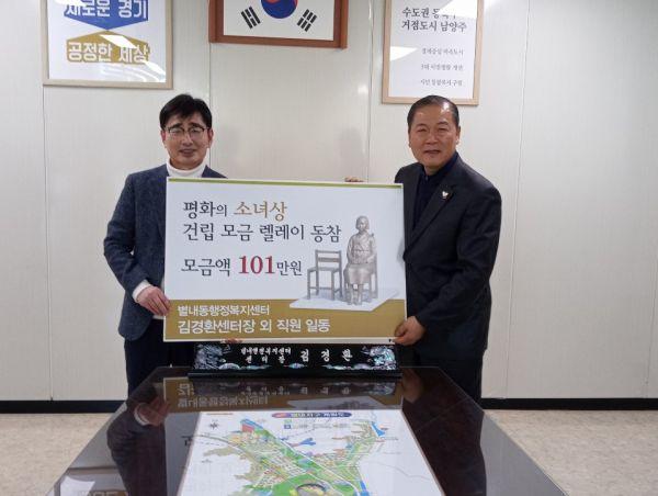 남양주시 별내행정복지센터 김경환 센터장은 6일 직원들과 함께 ‘남양주시 평화의 소녀상’ 건립을 위한 기금모금 릴레이에 동참했다.