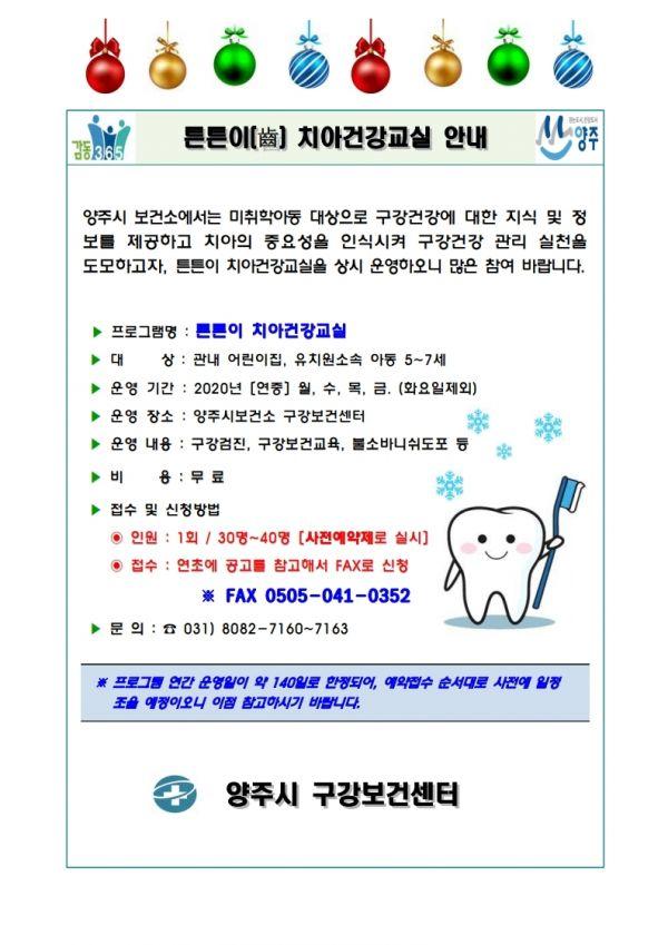 양주시는 오는 3월부터 양주시 구강보건센터에서 ‘튼튼이 치아건강 교실’을 운영한다고 7일 밝혔다.