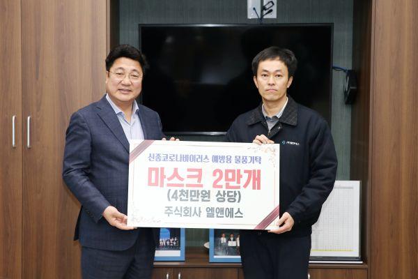 주식회사 엘앤에스는 지난 6일 이천시청을 방문해 KF94마스크 2만개를 기부했다.