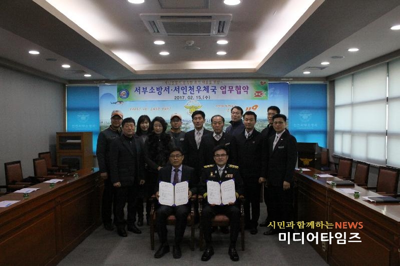 | 인천서부소방서, 서인천우체국과 소방활동 업무협약모습 <ⓒ미디어타임즈> |