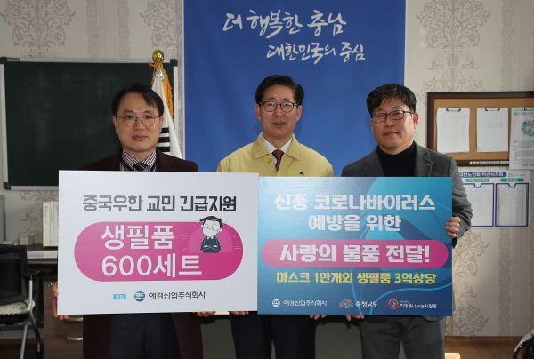 도는 애경산업이 기탁한 지원물품을 아산시 취약계층과 임시생활시설의 우한 교민에게 우선 전달할 계획이라고 전했다.