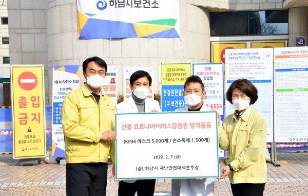 이날 김상호 하남시장과 구성수 보건소장은 신종코로나 방역물품 KF94마스크 5,000개와 손소독제 1,500개를 관내 병의원 비치를 위해 직접전달 했다.
