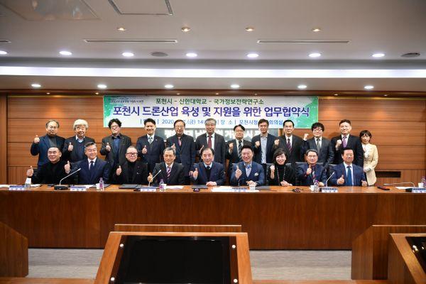 포천시는 7일 신한대학교, 국가정보전략연구소와 시청 시정회의실에서 ‘포천시 드론 산업 육성 및 지원을 위한 업무 협약식’을 개최했다.
