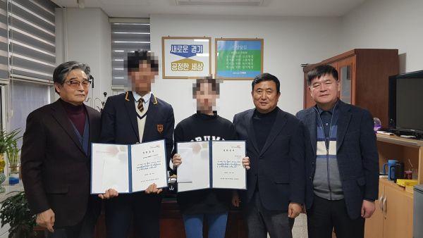 주민자치위원회 김선호 위원장과 최남진 부위원장은 지난 6일 송산1동 주민센터에서 관내 청소년 2명에게 각각 50만원씩 100만원의 장학금을 전달하고 격려하는 시간을 가졌다.