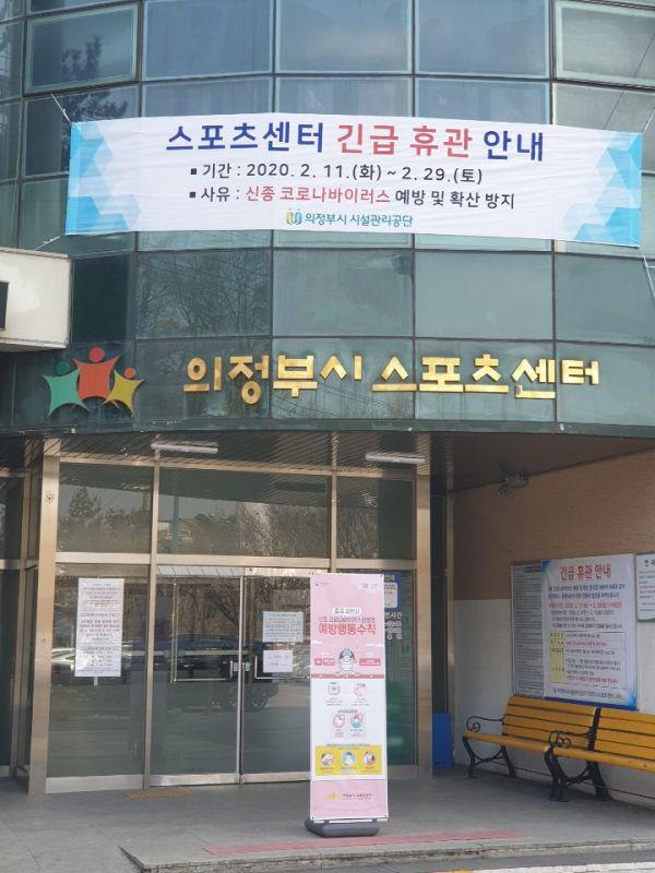 의정부시시설관리공단은 최근 확산되고 있는 신종 코로나바이러스 감염증의 확산을 원천적으로 차단하고자 의정부시 정책에 따라 고령의 시민들이 다중이용하는 장암동 스포츠센터를 긴급 휴관한다고 밝혔다.