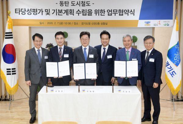 오산시와 경기도, 화성시는 7일 경기도청 신관 상황실에서 ‘동탄 도시철도 타당성평가 및 기본계획 수립을 위한 업무협약’을 체결하고 오는 2027년 개통을 목표로 본격 행정절차에 돌입한다.