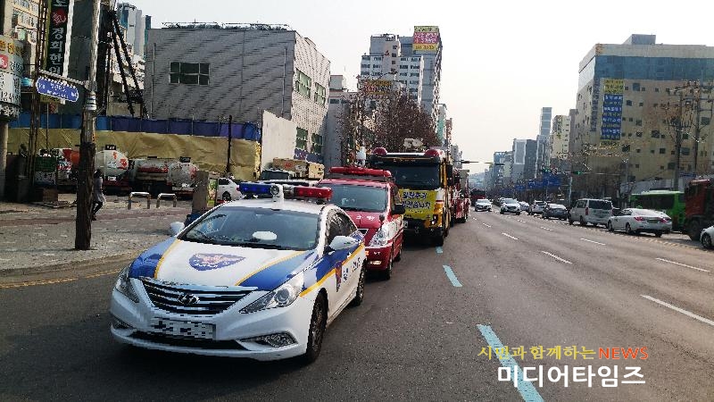 [미디어타임즈=문상수 기자] 부평소방서(서장 노경환)는 15일 소방차의 신속한 재난현장 접근성 향상을 위한 대시민 참여 소방차 길 터주기 캠페인을 실시했다. 이 날 캠페인은 소방차 길 터주기의 대국민 공감대 확산과 안전문화 및 생명보호의식 향상을 위해 유관기관이 함께 참여해 부평구 관내 교통량이 가장 많은 부평대로와 장제로 일대를 선정하여 대열을 이뤄 주행하였고 가두안내방송을 통해 길 터주기 홍보활동도 전개하였다.소방서 관계자는 “긴급차량 통행 시 우측 가장자리에 일시 정지 또는 양보 운전등을 통하여 소방차량 길 터주기에 시민들이 적극적으로 협조해 줄 것”을 당부했다.