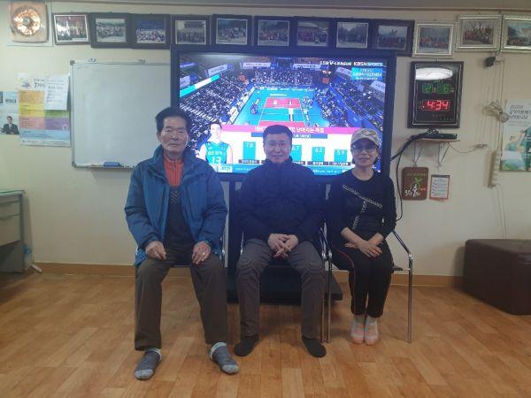 이날 경로당에는 전자칠판을 설치하기 위해 방문한 직원들을 환영한다며 어르신들이 떡과 다과 등을 준비하는 등 많은 기대와 감사함을 전했다.