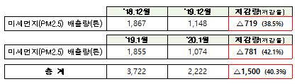 1월 한달간 석탄발전 총 8∼10기에 대한 가동정지와 함께 최대 49기의 상한제약을 시행했으며 그 결과, 1월중 미세먼지 배출은 지난해 같은 기간에 비해 약 42% 줄어드는 효과가 있었던 것으로 분석됐다.