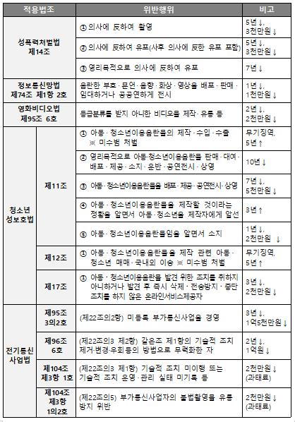 특히 웹하드 상 불법음란물을 유통하는 행위는 정보통신망법 뿐 아니라 형량이 높은 영화비디오법을 적용하는 등 적극적인 법령해석을 통해 강경하게 대응할 방침이다.
