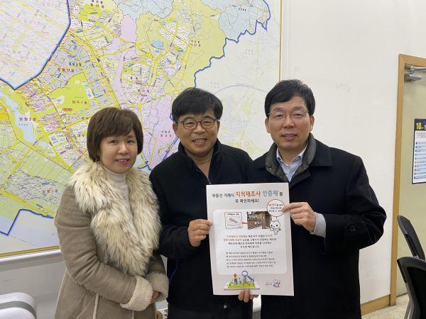 이날 회의에서 한국공인중개사협회 일산동구지회 관계자는 “부동산 거래 현장에서 ‘지적재조사 인증판’이 부동산 매물의 신뢰성를 높여주는 효과가 있으며 인증판의 QR코드로 현장에서 부동산관련 정보를 바로 확인할 수 있다는 점이 매우 우수하다”고 호평하며 ‘지적재조사 인증제 포스터’를 관내 중개업소에 비치하고 실제 거래현장에서도 적극 활용키로 했다.