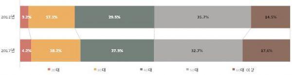 대표자 연령은 40대~50대가 다수를 이루지만, 20대, 30대와 60대 이상의 비중이 증가했다.