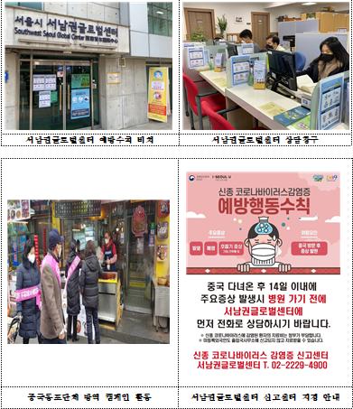 먼저 서울시는 외국인지원시설인 서남권글로벌센터를 임시 신고·접수센터로 지정해 외국인주민을 대상으로 이상 징후자 신고 및 접수, 선별진료소 연계 등을 하고 있다.