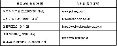 2020년 피시방 사업자가 컴퓨터 등에 설치해야 하는 차단 프로그램 선정·고시