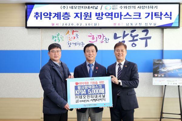 경기도 소재 마스크 제조?판매업체인 ㈜네오인터내셔날은 지난 10일 신종 코로나 바이러스 감염증 확산 방지를 위해 황사방역용 마스크 5,000매를 남동구에 기탁했다.