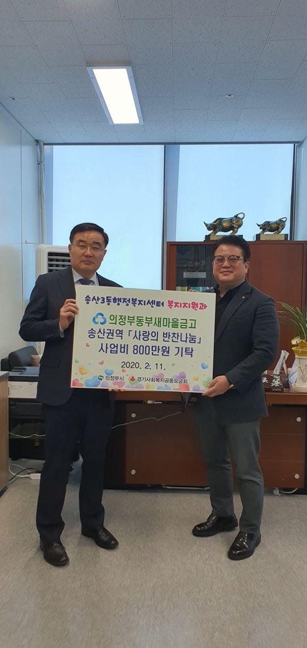 의정부동부새마을금고는 11일 송산3동 행정복지센터를 방문해 송산권역 사랑의 반찬 나눔 사업을 위한 후원금을 기탁했다.
