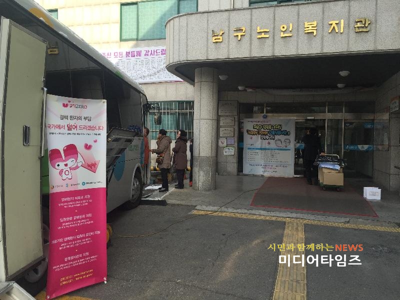 | 남구노인복지관앞 결핵이동검진차량 모습 <ⓒ미디어타임즈> |