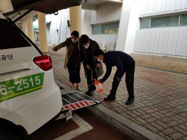 이동지원센터에서는 불안함을 해소하기 위해 차량별 연막소독 후 항바이러스 소독제를 차량내에 분무하고 운전원이 일회용 마스크를 착용 후 운행하고 있다.
