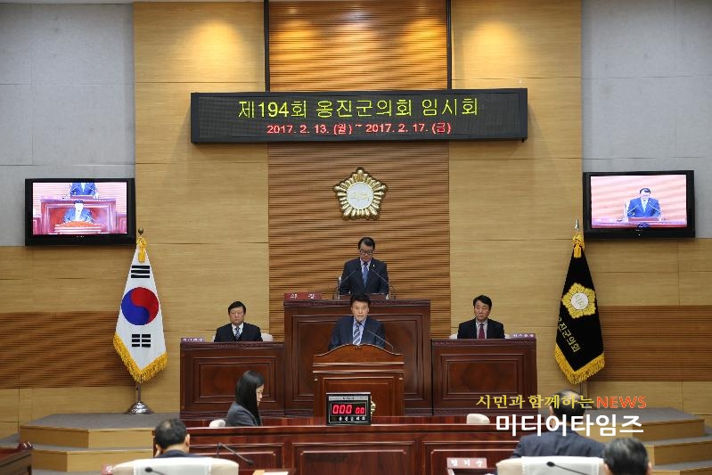 [미디어타임즈=문상수 기자] 인천시 옹진군의회(의장 백동현)는 2월 13일부터 2월 17일까지 5일간의 일정으로 시작한 제194회 옹진군의회 임시회 일정을 마무리 하였다.2017년 옹진군 주요업무 추진실태에 대한 점검을 위해 2017년도 옹진군 주요업무 추진계획보고를 청취하고, 옹진군 사무 위임 조례 일부개정조례안과 옹진군 행정기구 설치 조례 일부개정조례안 총 2건의 조례안을 심의·의결하였다.옹진군의회 백동현 의장은 이번 임시회에서는 “올해 사업을 추진함에 있어 불필요한 예산이 낭비되지 않도록 철저한 계획을 수립할 것을 주문하며, 옹진군은 도서지역이라는 특수성으로 해상교통 행정에 대한 주민들의 기대가 높으므로, 현재 발생되고 있는 주민불편에 대한 해결”을 집행부에 강력히 요구하였다.