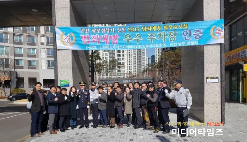 [미디어타임즈=문상수 기자] 인천남부경찰서(서장 조종림)는 2월 17일 강력범죄 예방을 위해 지하주차장 범죄환경개선에 노력한 용현동 SK스카이뷰 아파트에‘안심주차장’ 인증패 수여 및 제막식을 개최했다.지난 2016년에 준공된 용현동 SK스카이뷰 아파트는 지하주차장(5,000여 대 수용) 내에 CCTV 1,221대, 비상벨 573개, 사물 움직임에 따른 조명자동조절시스템, 반사경 등을 설치하여 여성상대 강력범죄 등의 예방에 힘써왔다.이에, 남부경찰서는 아파트 주민 대표 및 관계자들이 참석한 가운데 인증패 전달과 더불어 제막식을 진행했다.현판식에 참석한 정유정 입주자 대표는 “범죄예방을 위해 입주자분들이 다같이 노력해주었기 때문에 이와 같은 우수한 우수시설 인증패를 받을수 있었다”며 “앞으로도 주민의 불편사항과 좋은 안건을 적극적으로 의견수렴해 범죄로부터 안전한 아파트가 될 수 있도록 노력할 것”이라고 말했다.한편, 조종림 남부서장은 “안전한 치안환경을 위해 노력해준 아파트 주민분들게 감사드리며, 최근 경찰에서 3대반칙 척결 100일 계획을 추진중인데 이와 관련하여 아파트 시설안전, 리베이트 등의 반칙행위들이 발생되지 않도록 많은 협조를 부탁한다”고 말했다.