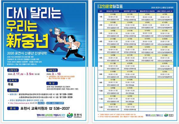 포천시는 오는 3월부터 지역 내 40세 이상 신중년 세대를 대상으로 '2020 포천시 신중년 인생대학'을 운영한다.