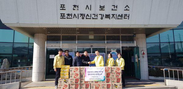 ㈜토성레미콘·토성산업은 지난 10일 포천시 방역대책상황실을 방문해 신종 코로나바이러스 차단 방역 활동에 여념이 없는 근무자들을 격려하기 위해 정성껏 준비한 과일 라면 등 위문품을 전달했다.