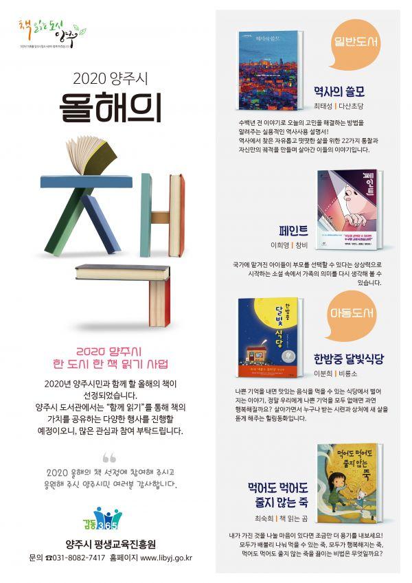 지난 2012년부터 실시하고 있는 ‘올해의 책’ 선정은 책 읽는 문화 확산과 ‘책 읽는 도시 양주’ 조성을 위해 추진하는 사업이다.
