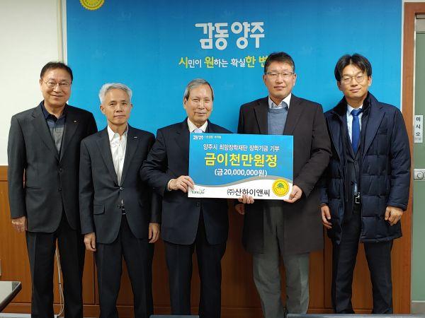 양주시 희망장학재단은 지난 11일 ㈜산하이앤씨에서 2천만원을, ㈜하나에서 경기사회복지공동모금회를 통해 1천만원을 지정 기탁했다고 밝혔다.