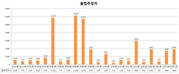 부평5동은 주차확보율이 가장 높았지만 불법주·정차 단속 건수도 많았다.