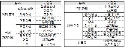 중소기업 복지플랫폼은 대한상의가 국내·외 사례 연구, 중소기업 대상 서비스 수요조사 등 1년간의 사전준비를 통해 선별한 휴양·여행, 취미·자기계발, 건강관리, 생활안정, 상품몰 등 5개 분야에 대해 21개 기업이 제공하는 복지상품을 중소기업 임직원에게 시장 최저가 혹은 보다 할인된 금액으로 제공한다.
