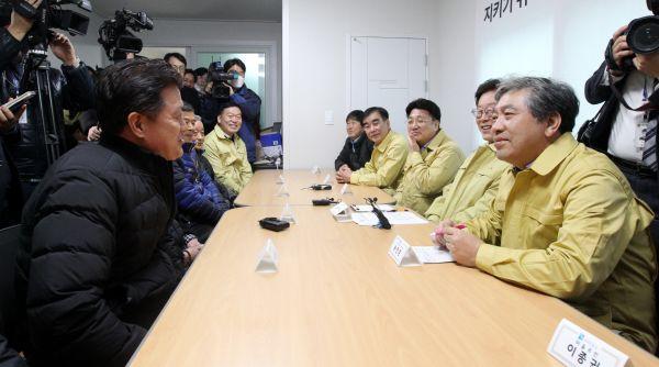 송한준 의장은 이날 오전 우한교민 임시생활시설로 지정된 ‘합동군사대학교 국방어학원’의 소재지인 이천시 ‘이황1리 마을회관’에서 지역주민들을 만나 응원의 메시지를 전했다.