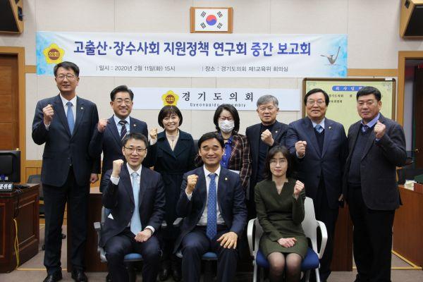 ‘경기도의회 고출산·장수사회 지원정책 연구회’ 회장 장태환 의원은 지난 11일 제1교육위 상임위 회의실에서 ‘고출산 장수사회를 위한 경기도형 정책모형에 관한 연구’에 대한 정책연구용역 중간보고회를 개최했다.