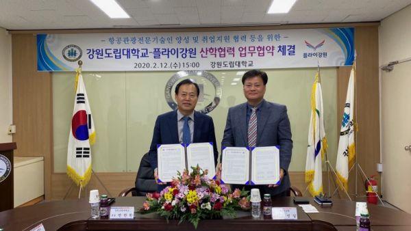 강원도립대학교와 플라이강원은 12일 대학본부에서 항공관광전문기술인 양성과 산학협력 활성화를 위한 업무협약을 체결하고 우수인재양성과 취업지원 활동, 지역사회기여활동 공동 추진 등을 협력해 나가기로 했다.