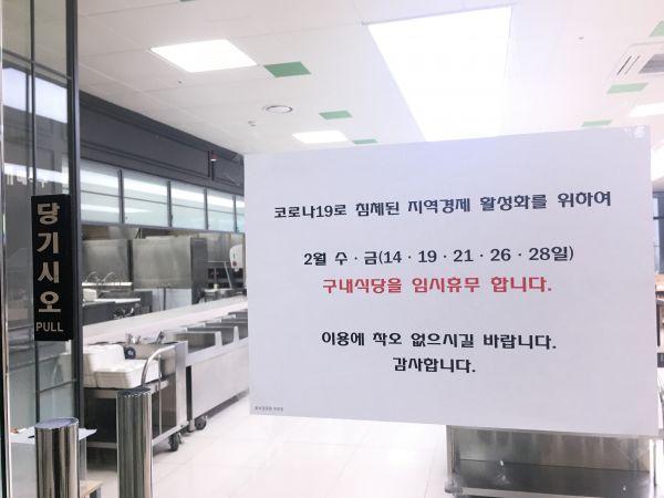 우선 시흥시청은 오는 14일부터 2월 한 달간 수요일과 금요일 구내식당을 운영하지 않는다.