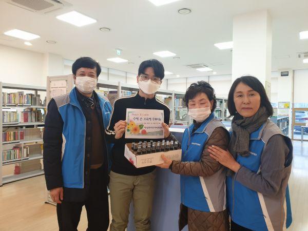 직접 만든 손 소독제는 주민들이 쉽게 가져갈 수 있도록 면사무소, 도서관, 파출소 등 관내 공공기관에 비치했다.