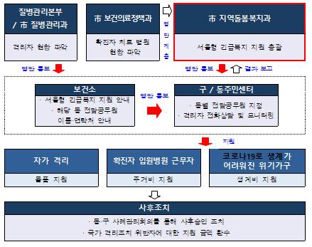 감염증 예방을 위해 자가 격리된 시민에게는 격리기간 동안 필요한 생필품을 지원하고 확진환자 입원 병원 근무로 인해 주거지원이 필요한 병원 근무자에게는 주거비를 지원하며 코로나19의 영향으로 갑작스럽게 휴·폐업, 실직 등 생계에 어려움을 겪게 된 시민에게 ‘서울형 긴급복지’를 통해 생계비를 지원한다.