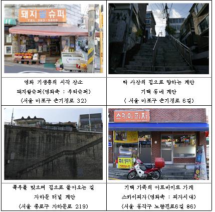 영화 속 주요 촬영지였던 마포구 ‘돼지쌀슈퍼’와 ‘기택 동네 계단’-종로구 ‘자하문 터널 계단’-동작구 ‘스카이피자’로 이어지는 ‘영화 ‘기생충’ 촬영지 탐방코스’는 이미 지난해 12월, 서울관광 홈페이지를 통해 소개되어 6만 뷰를 돌파했다.
