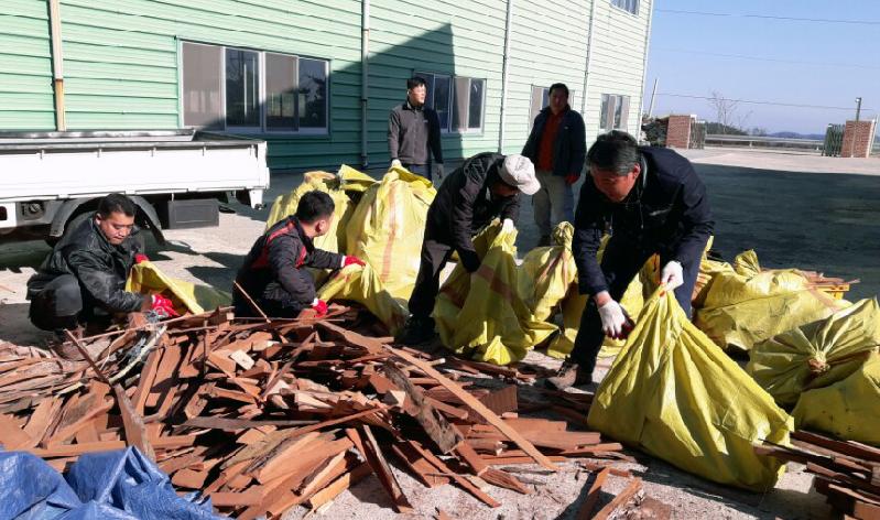 | 여수시 남면사무소 직원들이 지난 15일 금오도 생활폐기물처리시설에서 독거노인에게 전달할 땔감을 정리하고 있다.<사진/ⓒ여수시청 제공> |
