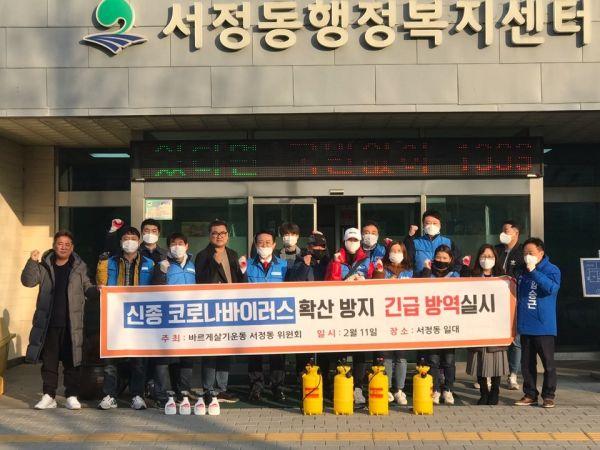 평택시 바르게살기운동 서정동위원회는 지난 11일 버스승강장, 공원, 놀이터 등 다중이용시설을 대상으로 코로나19 확산 방지를 위한 방역활동을 실시했다.