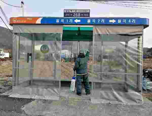 파주시는 코로나19 예방을 위해 불특정 다수의 시민이 이용하는 버스 및 택시 승강장에 대한 방역활동을 주기적으로 실시하고 있으며 승강장의 밀폐된 보온텐트를 즉시 철거하고 개방할 방침이다.