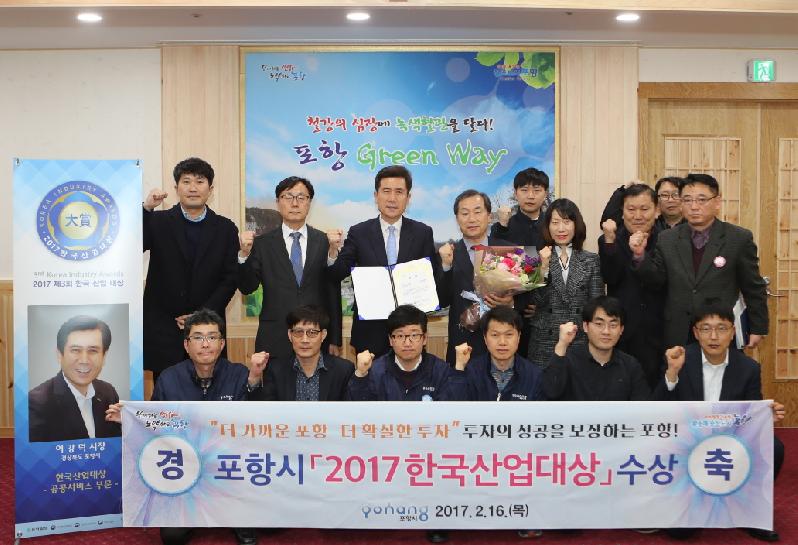 포항시가 지난 16일 그랜드하얏트호텔에서 열린 산업통상자원부와 미래창조과학부, 중소기업청, 코트라가 공동 주관하는 ‘2017 한국산업대상’의 ‘공공서비스’ 부문 대상을 수상했다. 한국산업대상선정위원회는 “포항시가 민선6기에 들어와 ‘투자·기업하기 좋은 도시’ 조성을 위해 열정적으로 활동을 펼친 점이 높이 평가돼 이번에 수상의 영광이 주어졌다”고 밝혔다. 포항시는 권역별, 산업별 특성을 고려하여 포항만의 입지적 강점을 바탕으로 활발한 투자유치 활동을 강화해왔다. 외국인투자 전용단지를 지정(현재 33만㎡, 추가 33만㎡)하여 입주 기업에 대해 임대료 감면, 세제 혜택 제공 등과 같은 제도적 지원하고 공단 진입로를 정비하고 노후시설을 보수 하는 등 각종 기업 지원책을 마련했다.