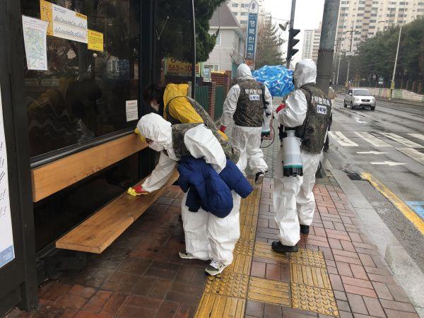 구리시수택3동방위협의회는 지난 12일 신종 코로나19 확산방지를 위해 다중이 이용하는 버스정류장 등에 대한 방역소독 실시하고 시민들에게 손소독제 만드는 방법을 소개하는 안내문을 배포했다.