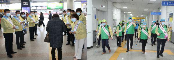 수원시의회는 13일 오후 빠르게 확산되고 있는 코로나 19의 예방을 위해 유동인구가 많은 버스터미널, 지하철역 등에서 예방수칙 홍보 및 방역활동에 나섰다.